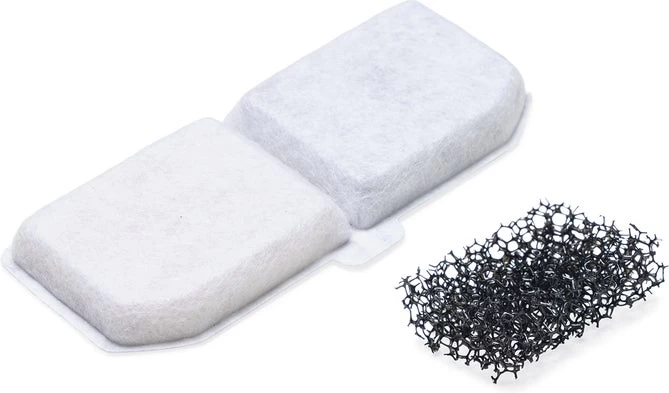 Deze Beeztees Filtersets bevat 3 vervangende sponsfilters voor de waterpomp en 5 vervangende koolstoffilters voor de watercirculatie van Beeztees drinkfontein Sjors. De sponsfilters vangen haren en grove vuildeeltjes op, terwijl de koolstoffilters zorgen voor vers drinkwater zonder onaangename geuren of smaken. Hierdoor blijft het water schoon en aantrekkelijk voor jouw huisdier.