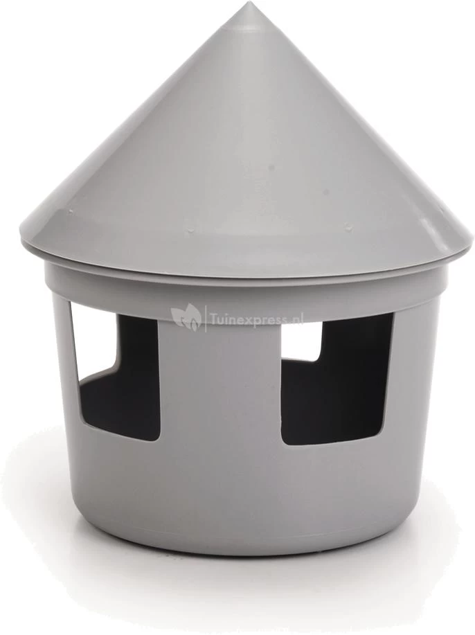 Een plastic duiven drinkbak. Deze bak heeft rondom gaten, zodat de duiven makkelijk bij het water kunnen. Voorzien van een deksel. Inhoud: 2 liter.