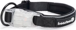 De Beeztees Parinca Premium Halsband is een prettige halsband voor jouw hond. De halsband is gevoerd met neopreen wat ademt en bovendien weerbestendig is. Zo is neopreen bestand tegen water (het droogt snel). De halsband is voorzien van een trekbeveiliging. De ring waar de hondenriem aan wordt bevestigd, zit direct naast de sluiting van de halsband. De plek van deze ring zorgt ervoor dat er niet meteen druk wordt uitgeoefend op de keel van jouw hond wanneer jouw hond aan de riem trekt. Dit is voor jouw hond wel zo prettig! Bovendien voorkomt het ook scheuren in de halsband, wanneer de halsband onder spanning staat. Daarnaast is de halsband ook nog voorzien van een “lock”, zodat de kliksluiting niet ongewenst open kan gaan. Naast dat de halsband kan worden gebruikt als normale halsband, is dit ook een lichtgevende halsband voor de hond! Zo is jouw hond ook in het donker goed zichtbaar. De USB oplaadbare LED verlichting zit verwerkt in de waterafstotende kliksluiting en beschikt over 3 standen: langzaam knipperen, knipperen en snel knipperen.