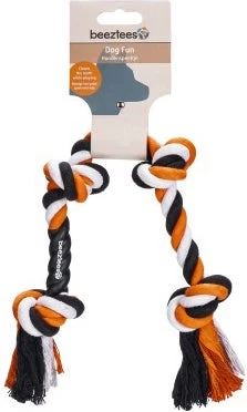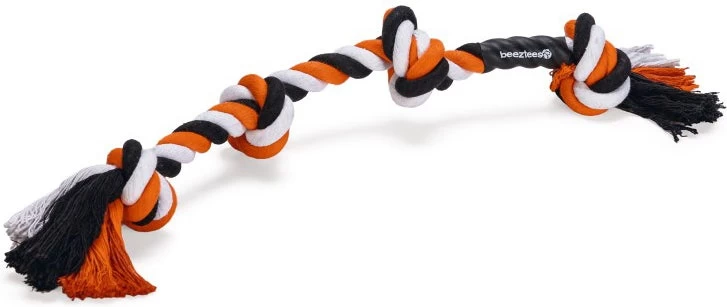 Beeztees Hondenspeelgoed Flostouw 4 Knopen Zwart/oranje 140 G