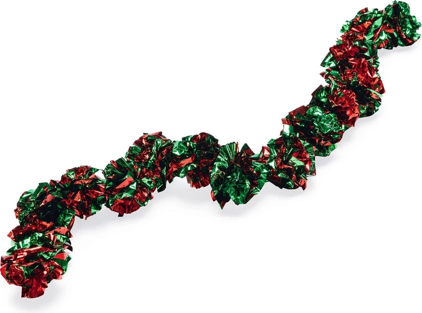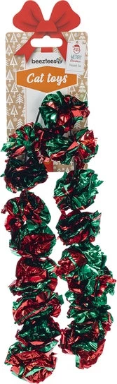 Is jouw kat dol op het spelen met kerstslingers? Dan is dit kattenspeelgoed van het merk Beeztees een perfect cadeau voor de feestdagen! Deze slinger is speciaal gemaakt voor katten en bestaat uit allerlei stukjes folie in leuke kerstkleuren. Zodra jouw kat met de slinger gaat spelen, maken de stukjes folie een knisperend geluid. Al met al kan jouw kat uren speelplezier beleven met zijn of haar persoonlijke Beeztees kerstslinger. Zo worden hopelijk de slingers uit de kerstboom met rust gelaten! de slinger heeft een afmeting van 60 x 5 x 5 cm.