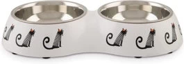 De kattenvoer- en drinkbak Muzy van Beeztees bestaat uit 2 bakjes, zodat jouw kat zijn eten en drinken altijd bij elkaar heeft staan. Om deze vrolijke diner set nog leuker te maken, zijn deze voer- en drinkbak aan de voorkant voorzien van kattenfiguurtjes. De set heeft een afmeting van 27 x 14 x 4,5 cm en een inhoud van 2 keer 160 ml.