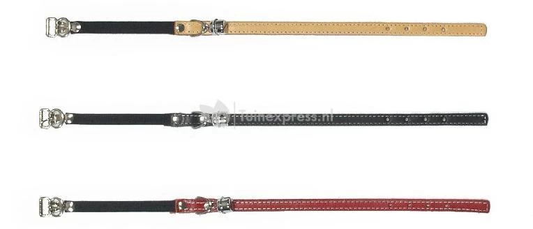 Een lederen kattenhalsband met elastiekje. Inclusief een belletje, zodat vogels en andere kleine dieren op tijd gealarmeerd worden voor uw kat.