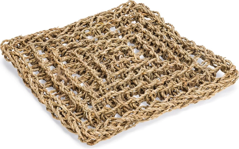 Met deze Nature Knaagdier Speelmat kan je jouw knaagdier of konijn voorzien in al zijn of haar speelbehoefte. Deze speelmat is gemaakt van natuurlijk materiaal. Hierdoor kan het geen kwaad wanneer jouw dier zijn tanden in het materiaal zet. Wat deze mat zo leuk maakt, is dat deze beschikt over diverse speelelementen. Deze diverse items kan je zowel vast laten aan de mat maar je kan ze ook loshalen. Zo kan je bijvoorbeeld iedere keer een ander speeltje vastmaken aan de mat. Door deze variatie blijft het speelgoed interessant voor jouw dier. De speelmat beschikt over een geweven mat gemaakt van zeegras, 2 rattan balletjes, 1 opgerold zeegras touw, 2 sisal touwtjes, 5 bamboe stokjes en 2 wortels gemaakt van maisbladeren.