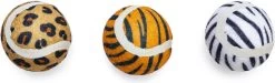 Ga op avontuur met jouw kat en de Beeztees kattenspeelgoed Jungle Tennisballen Panter. Elke tennisbal is uniek met zijn eigen wilde print: zebra, tijger en panter. Deze tennisballen zijn ideaal formaat voor katten, perfect voor actief spelen en achtervolging, terwijl ze tegelijkertijd een vleugje junglestijl toevoegen aan jullie speelmomenten. Doordat de balletjes alle kanten op rollen tijdens het spelen, tover je jouw kat al snel om naar een echte jager. – Set van 3 tennisballen – Met verschillende prints: zebra, tijger en panter – Geschikt voor interactief spelen en apporteren Afmetingen: Diameter: 4,5 cm