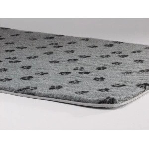 Afgebiesd vetbed met schattige voetprint. Zeer geschikt voor manden, bedden, kooien en andere plekken waar uw hond ligt. Antislip en vochtopnemend. Technische omschrijving: 150 x 100 cm. Wasvoorschriften: Wasbaar op 40 graden.