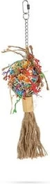 Het Beeztees vogelspeelgoed Ovi is super leuk speelgoed voor je vogel dat je in de vogelkooi hangt. Dit speeltje bestaat uit een bal van vrolijke touwtjes met daaronder een flosdraad, die de aandacht van je vogel zal trekken. Makkelijk op te hangen met een metalen haakje.