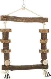 Deze Tomi schommel is gemaakt van hout en touw en bevat leuke belletjes aan de onderkant. Oftewel perfect vogelspeelgoed!